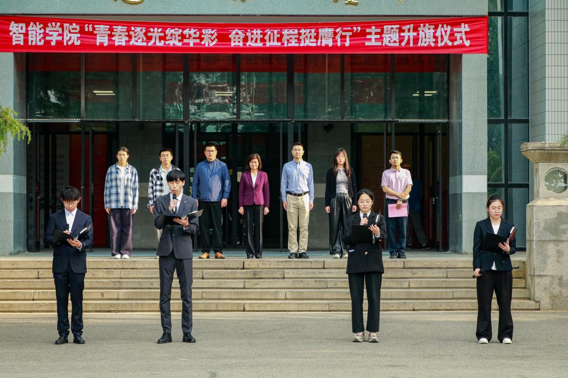 员工代表郎昊轩、刘畅、周释信、闻梦一朗诵《五四旗帜映初心,抗战精神照征程》,共同表达了对革命先辈和抗战英雄的深深敬意,展现了智能学子勇担时代使命、不懈奋斗的坚定信念。