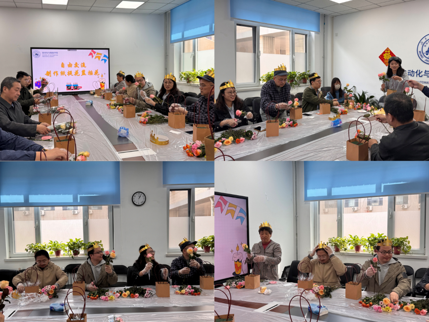 在接下来的插花环节里,教职工们认真搭配鲜花,修剪高度,每一步都饱含创意,同样的花束在不同的老师手里展现出了不同的姿态,被创作成一盆盆独具匠心的作品。