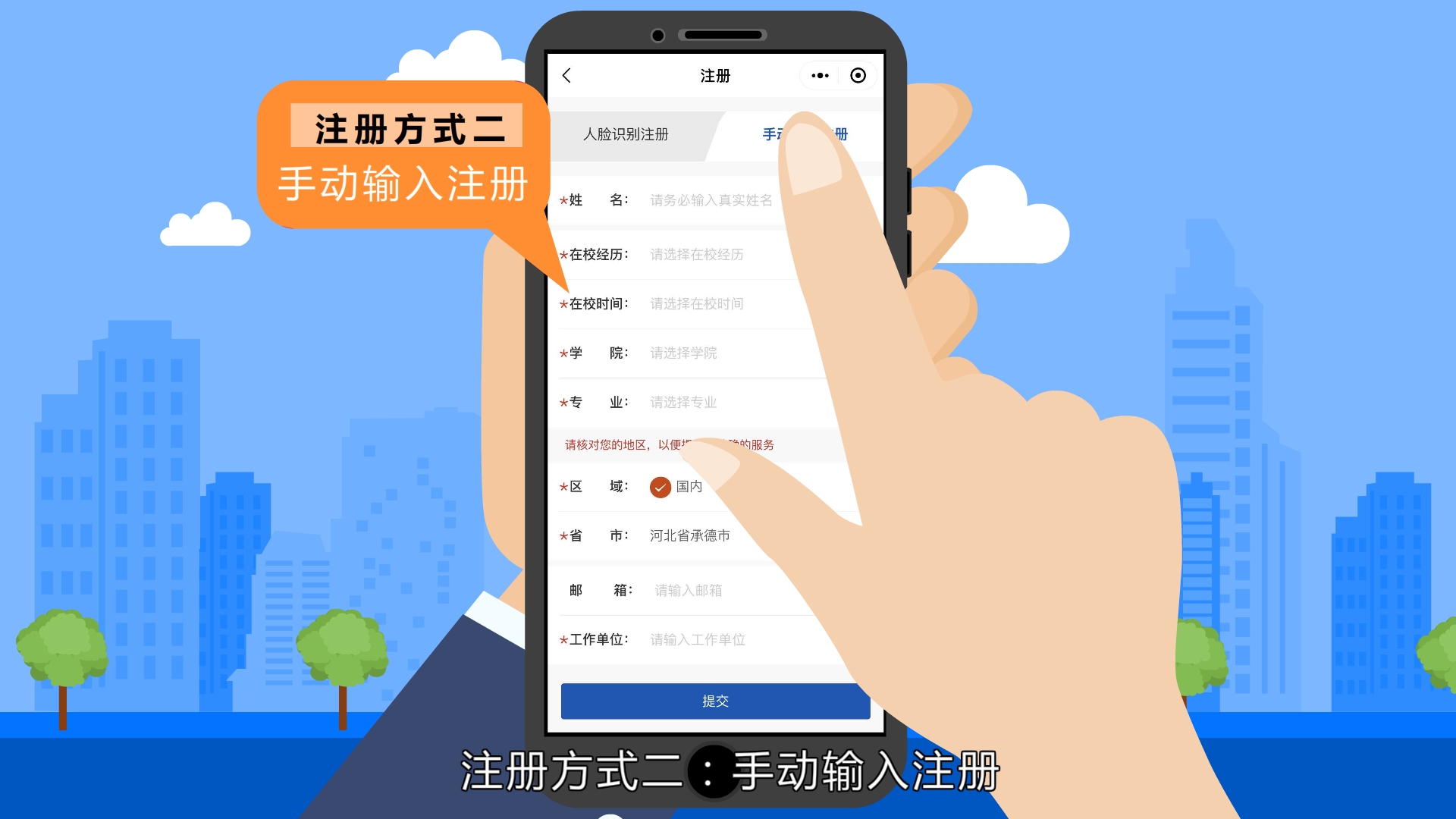 注册方式一:人脸识别注册 注册方式二:手动输入注册