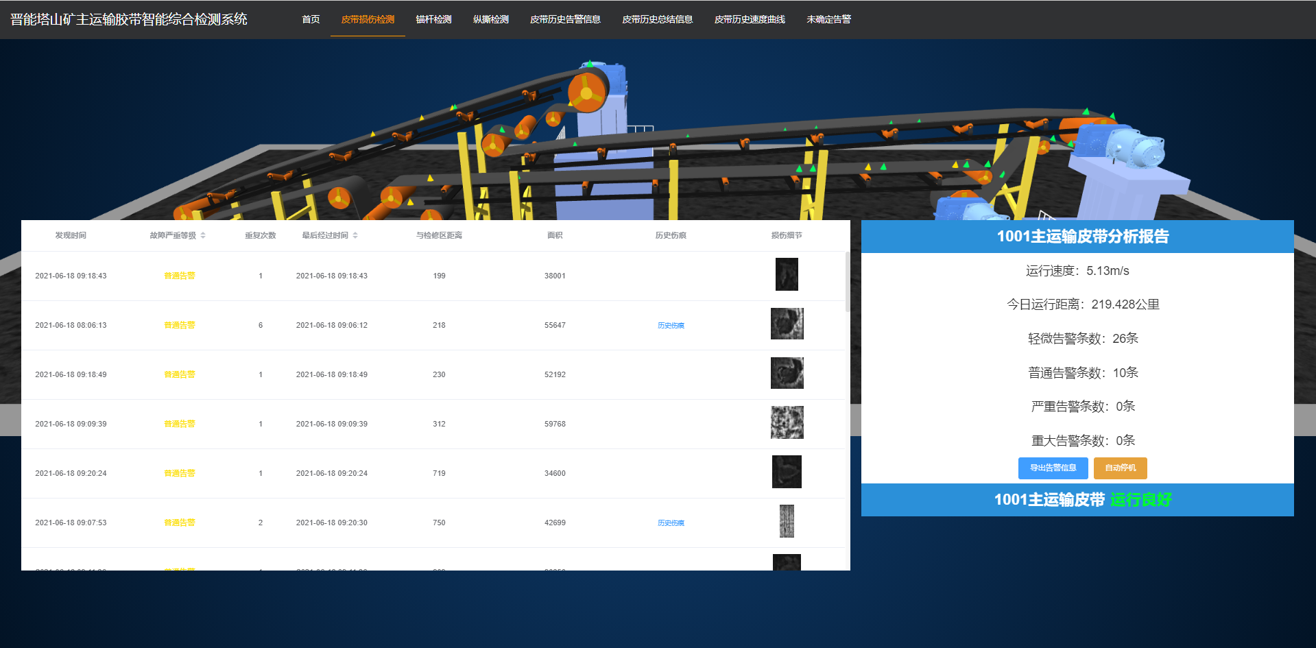 煤流主运输胶带智能综合检测系统