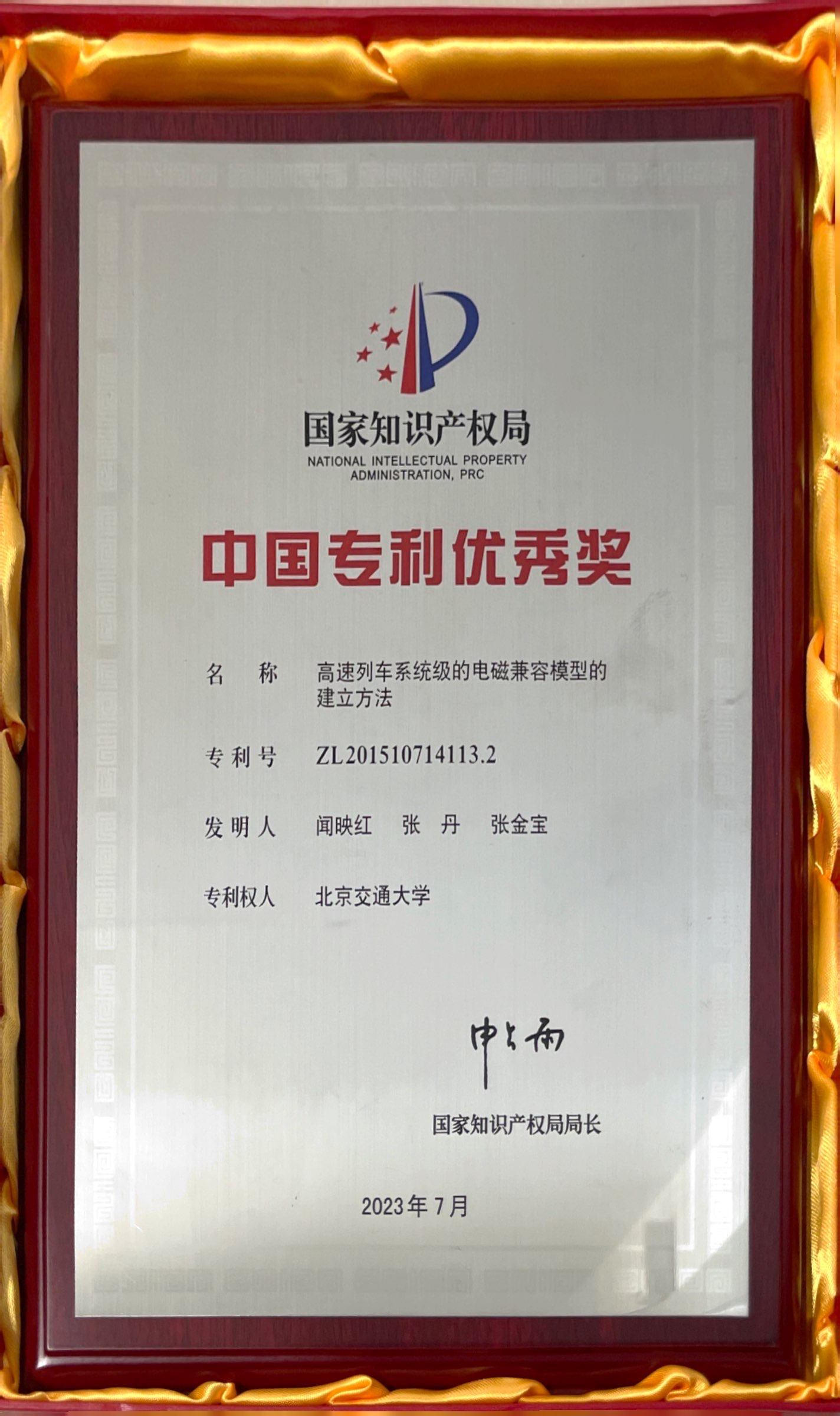 6. 中国专利优秀奖:高速列车系统级的电磁兼容模型的建立方法