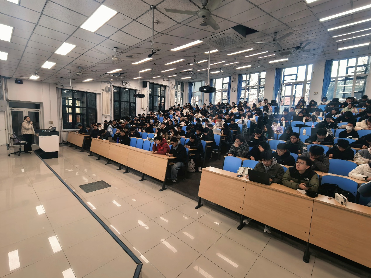 12月22日上午,谈球吧官方网站于SY107举办第二期“行业大讲堂”暨“学长来了”主题讲座。海信集团人资行政部招聘负责人周童、公司党委副书记王浩业、学工办主任李兴华、团委书记高宁、研究生辅导员田嘉欣和200余名同学参加。活动由李兴华主持。