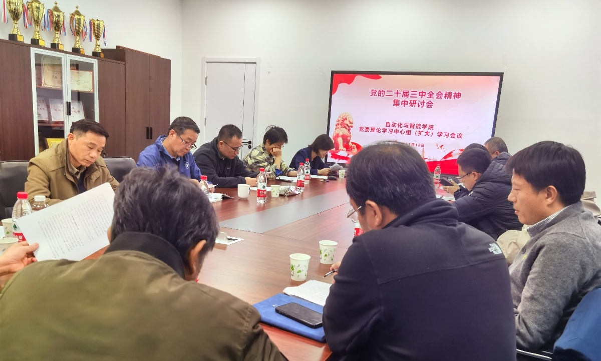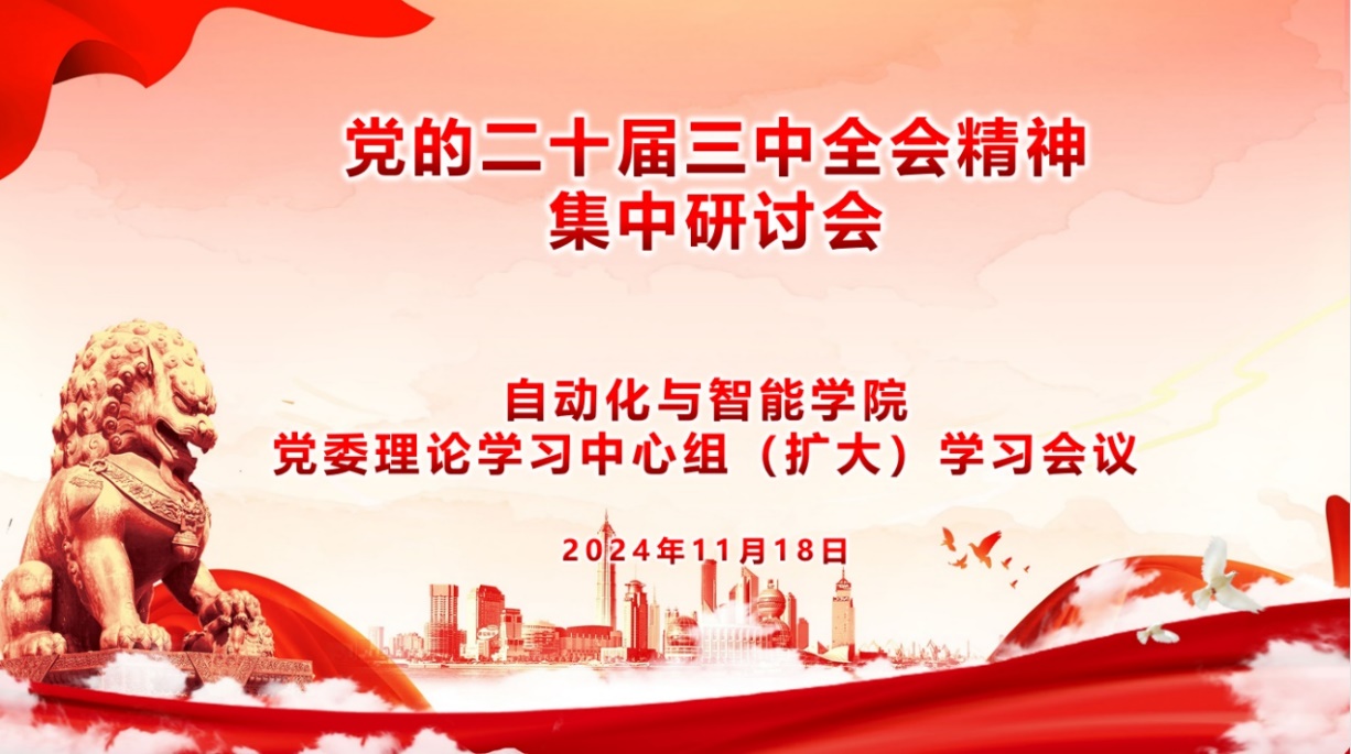 11月18日,自动化与智能公司党委在九教北102B会议室召开理论学习中心组扩大学习会议暨党的二十届三中全会精神集中研讨会,公司党委理论学习中心组成员、各所所长、教工支部书记、七级管理人员参会,深入学习研讨党的二十届三中全会精神。会议由公司党委书记闻映红主持。